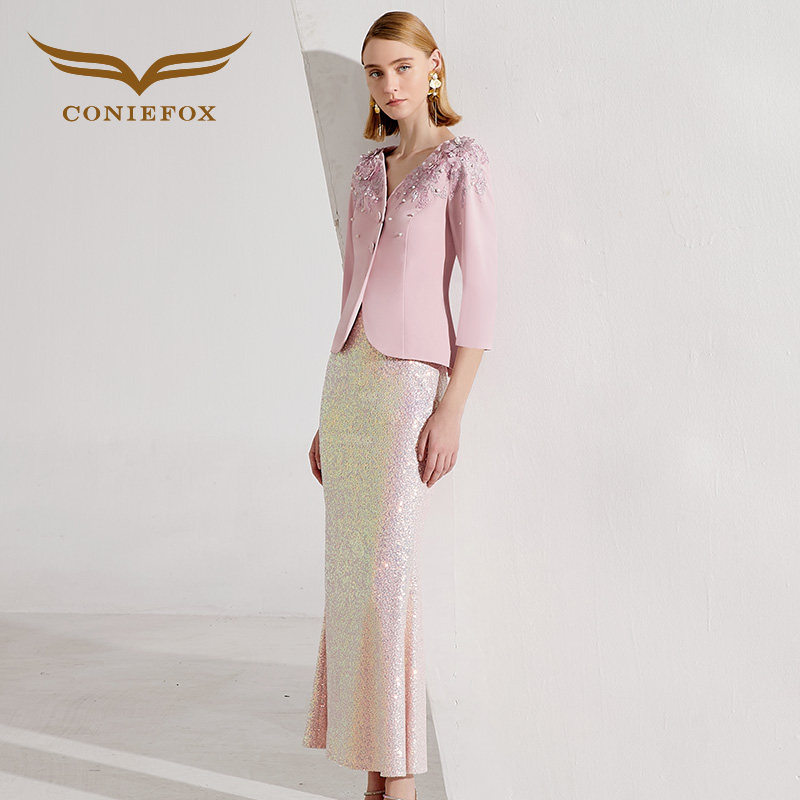 创意狐新款粉色减龄套装礼服套装