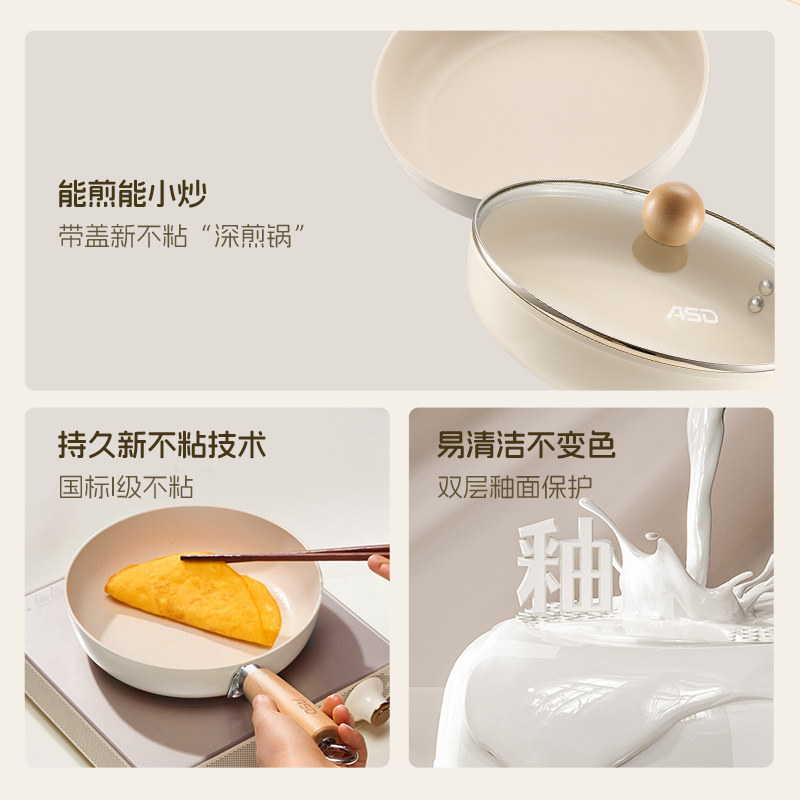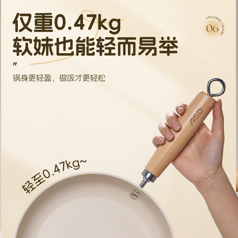 爱仕达平底锅不粘锅家用陶瓷牛排煎锅不沾小炒锅电磁炉煤气灶专用