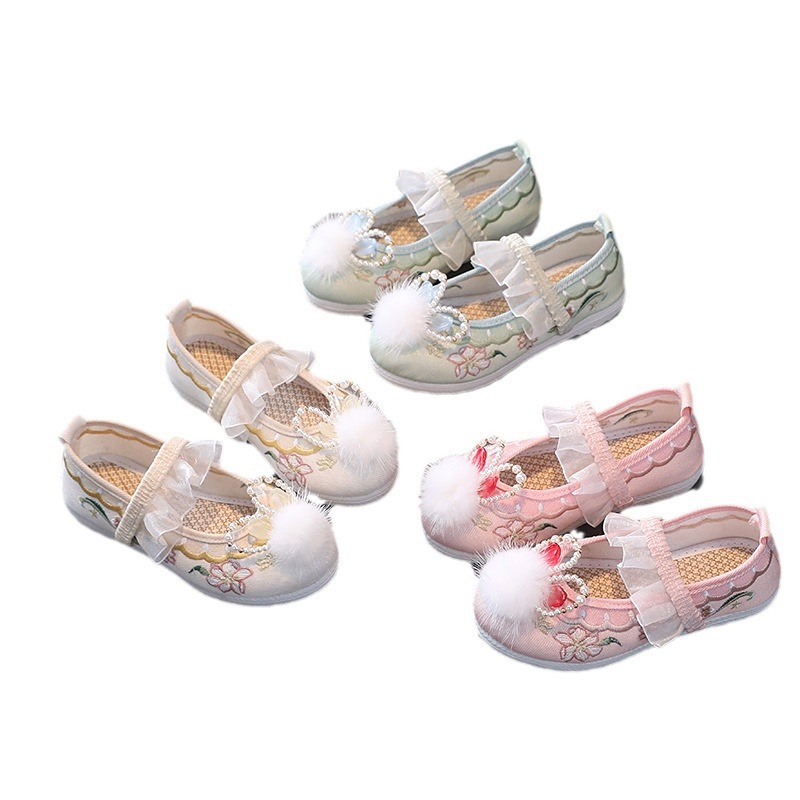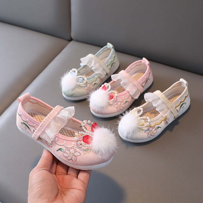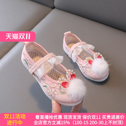 女童汉服鞋子古装儿童绣花鞋古风老北京布鞋小公主鞋冬季网面凉鞋