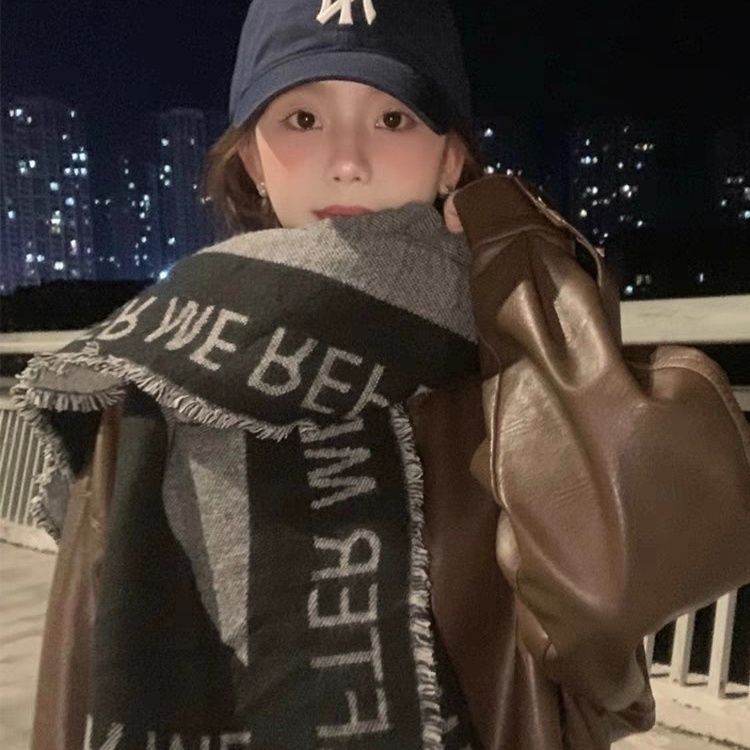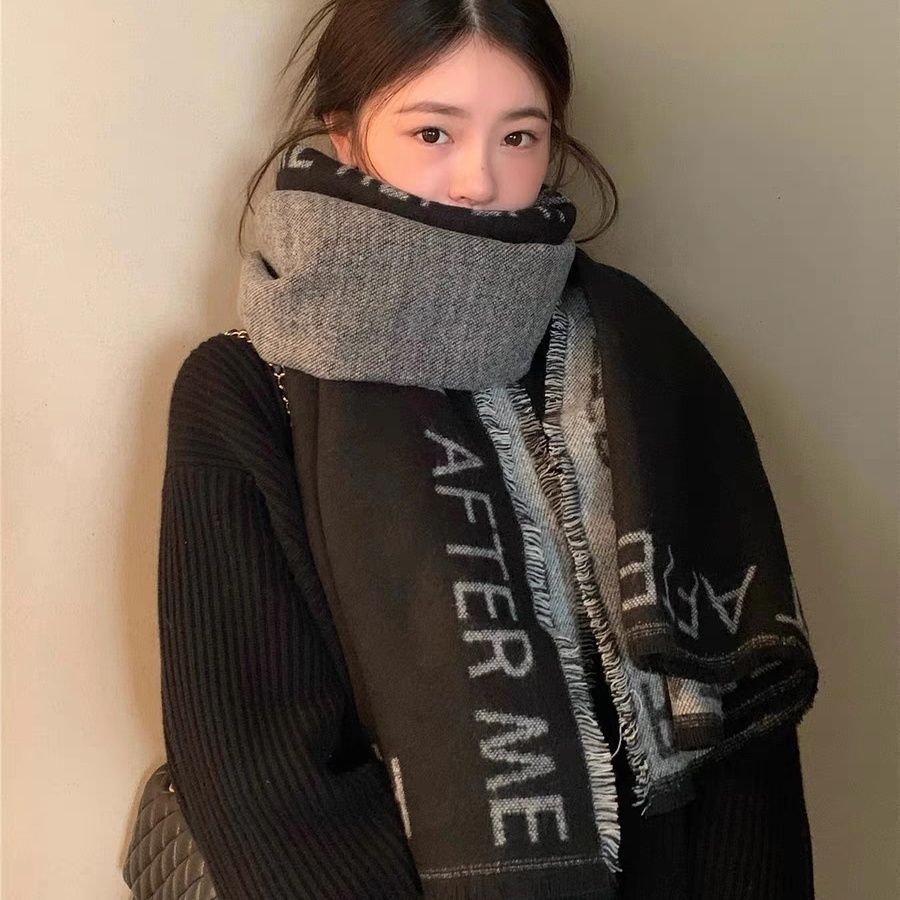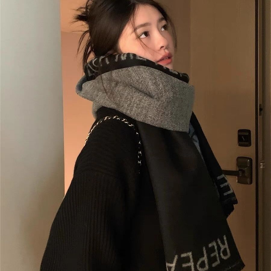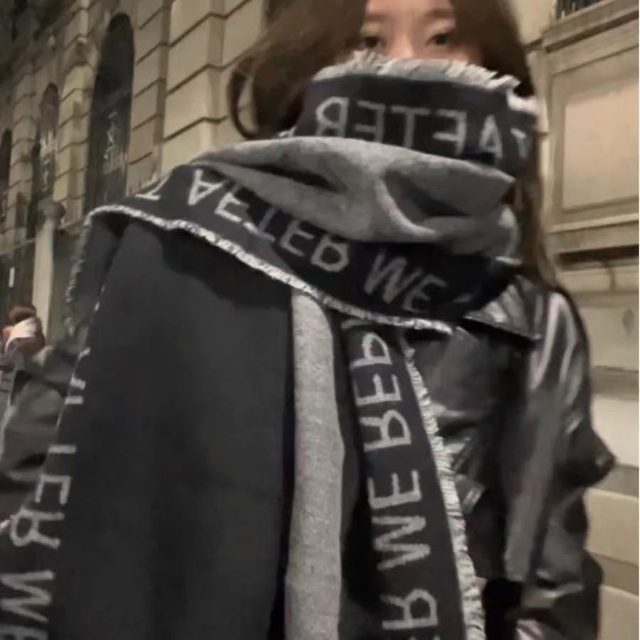 日系小众高级感围巾女暗黑清冷风披肩保暖加厚防风秋冬情侣围脖男