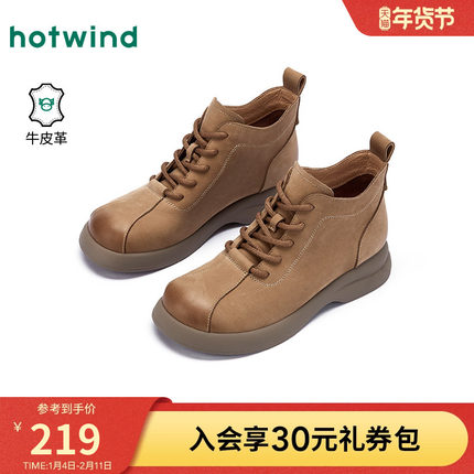 热风厚底马丁靴女2025年冬季新款复古百搭休闲靴短筒杏色女鞋子
