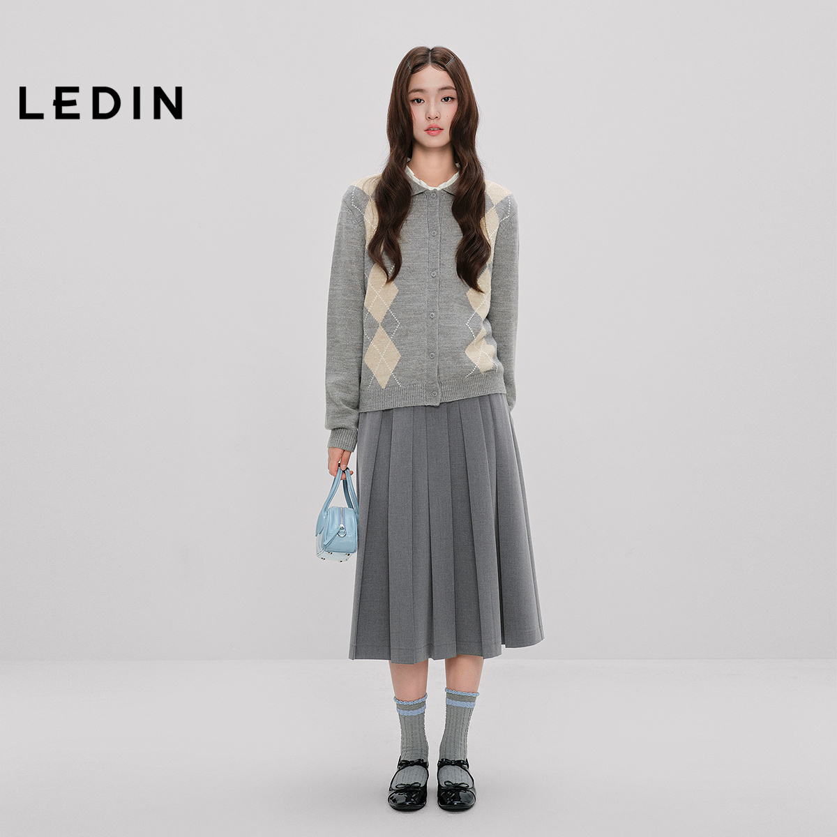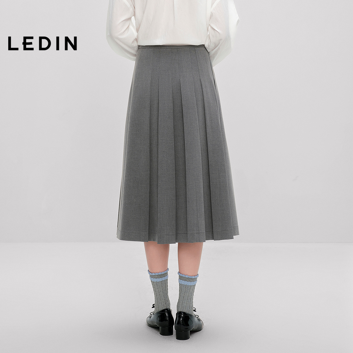 【商场同款】乐町学院风长裙秋季款设计感百褶裙半身裙C1GFF3412