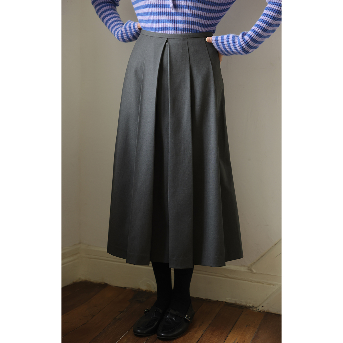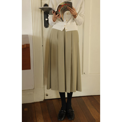 solighter 法式复古高腰百褶半身裙女早春2025新款a字中长款裙子