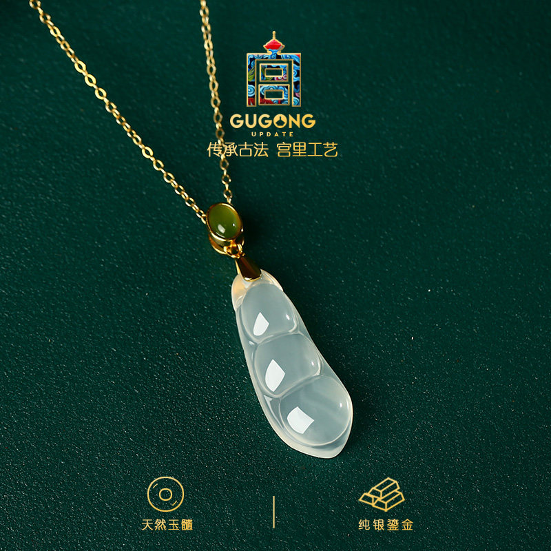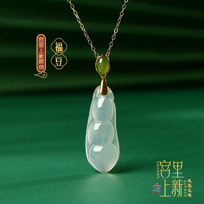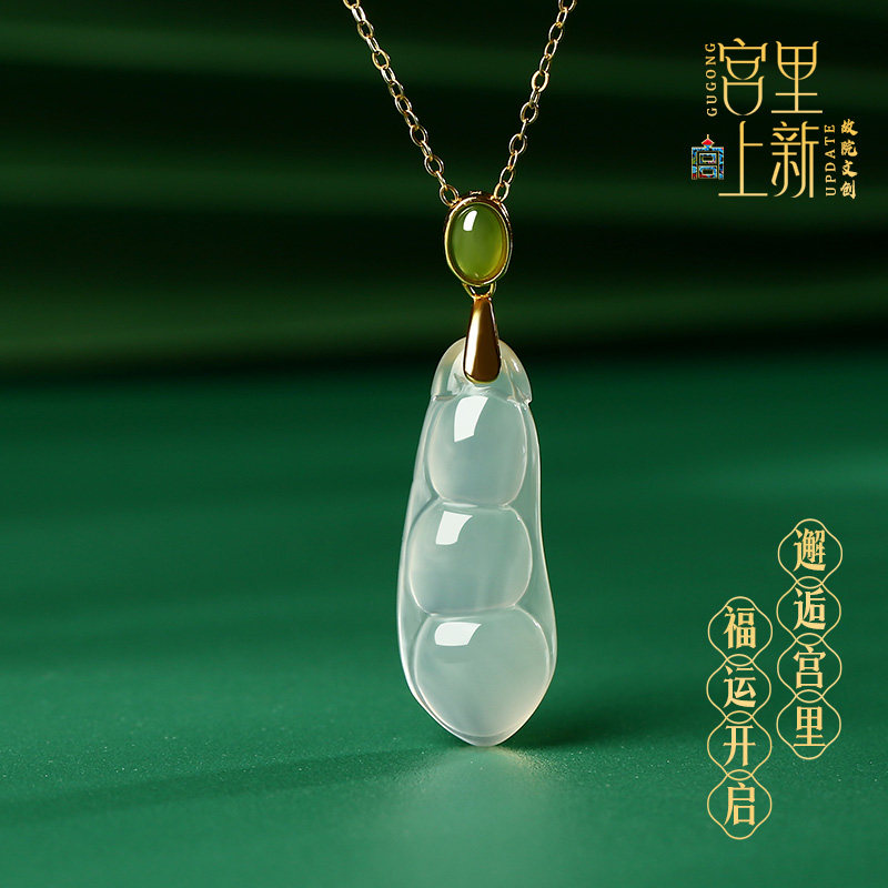 宫里上新福豆吊坠女玉髓玉石四季豆玉坠项链平安豆生日礼物送妈妈