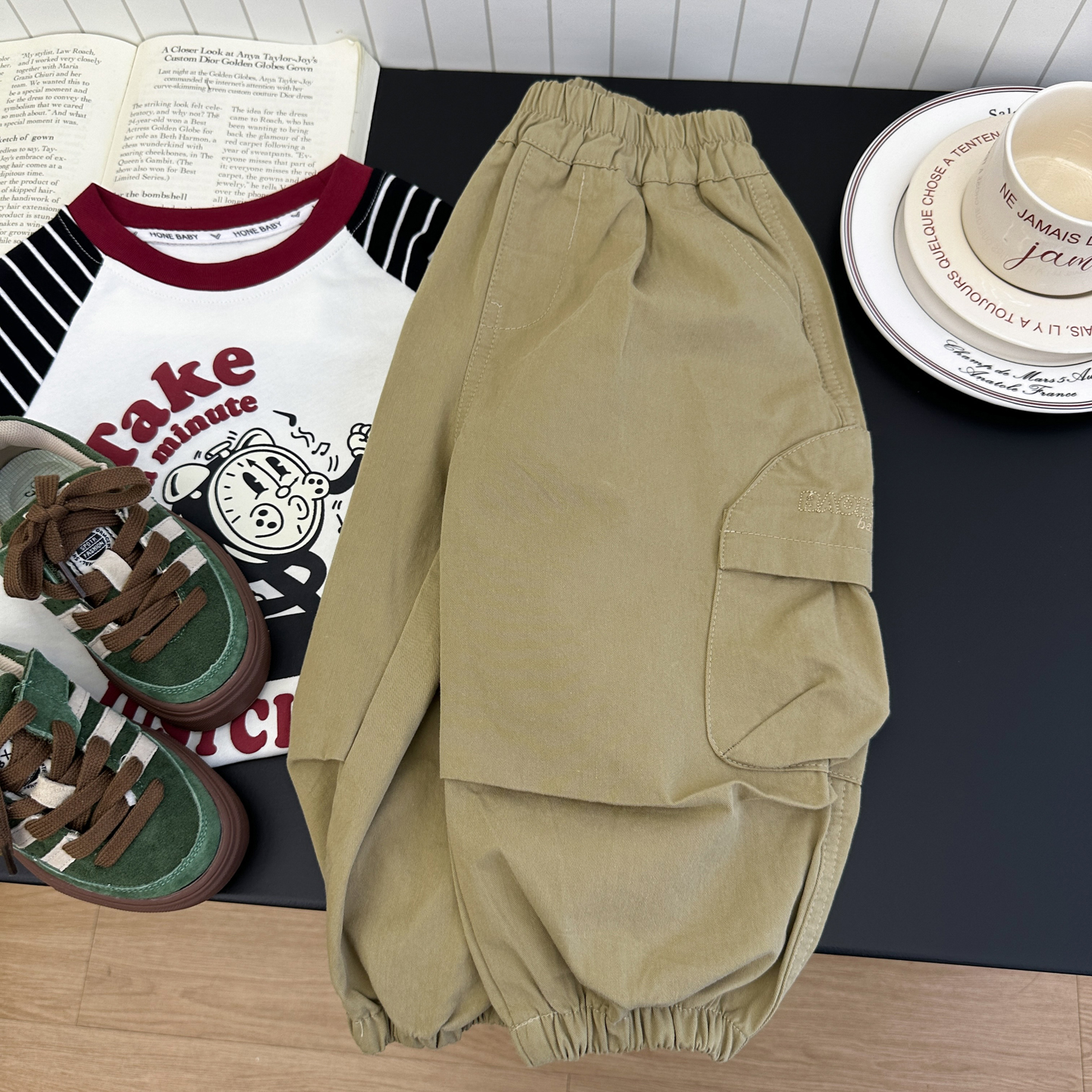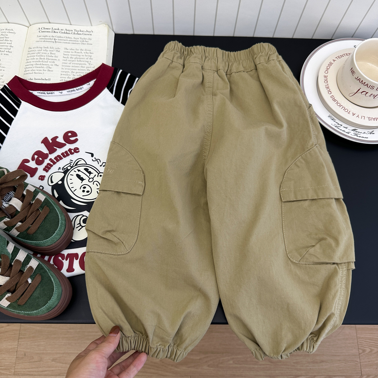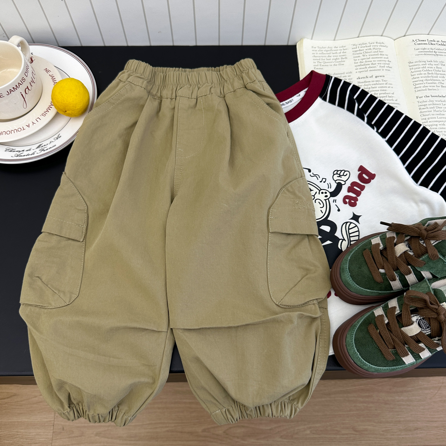 男童工装裤子2025新款儿童春秋纯棉卡其色束脚休闲裤宝宝秋装长裤