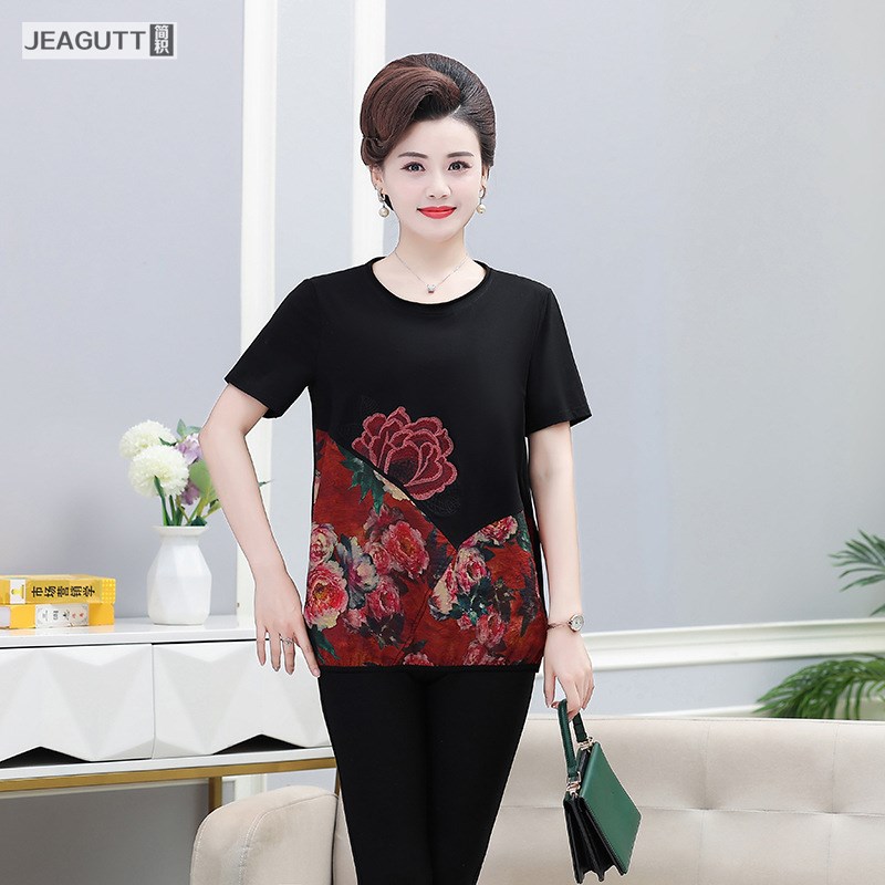 夏季短袖T恤中老年人胖奶奶女装加肥加大码200斤宽松妈妈薄款上衣