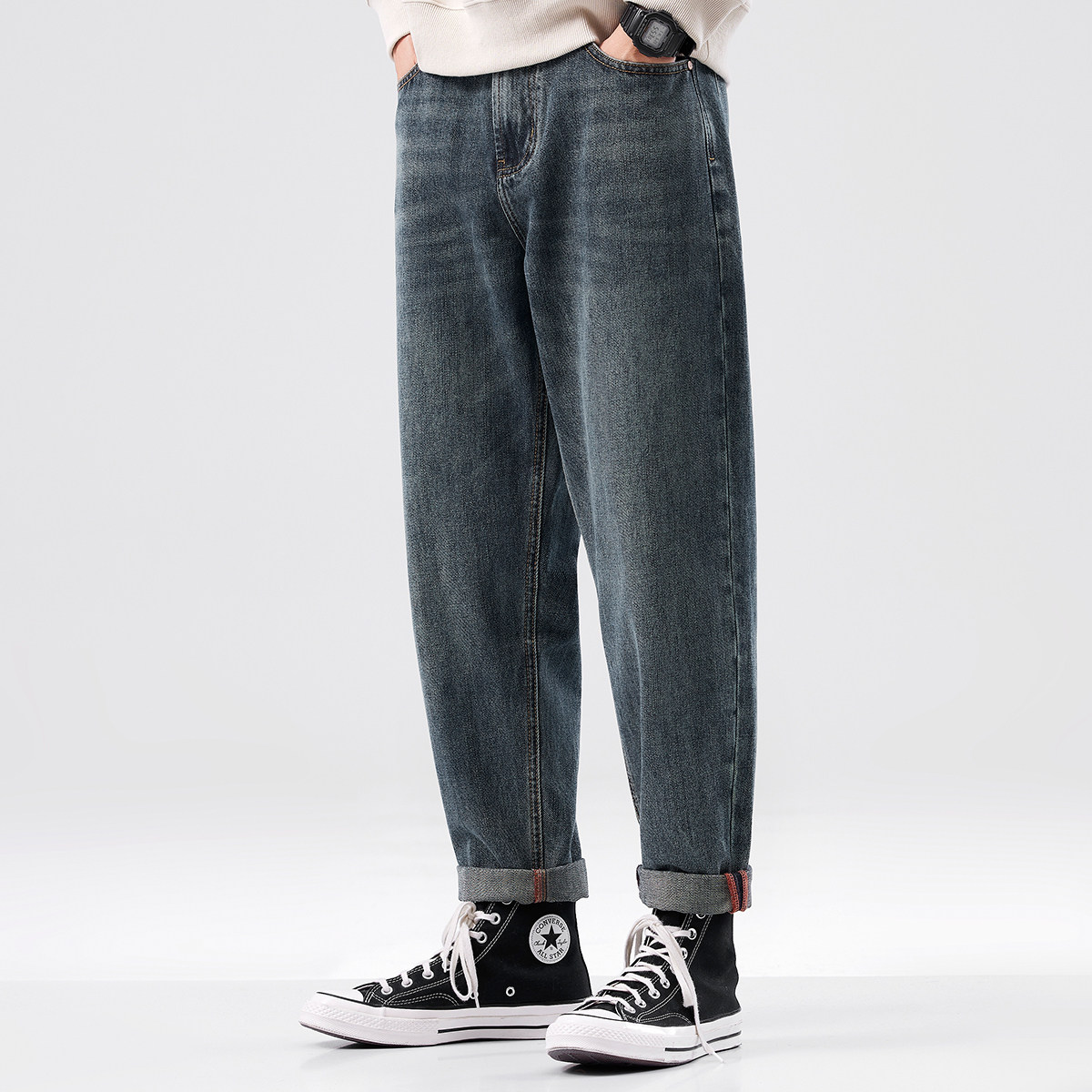 hansca水洗微锥牛仔裤男春季新款