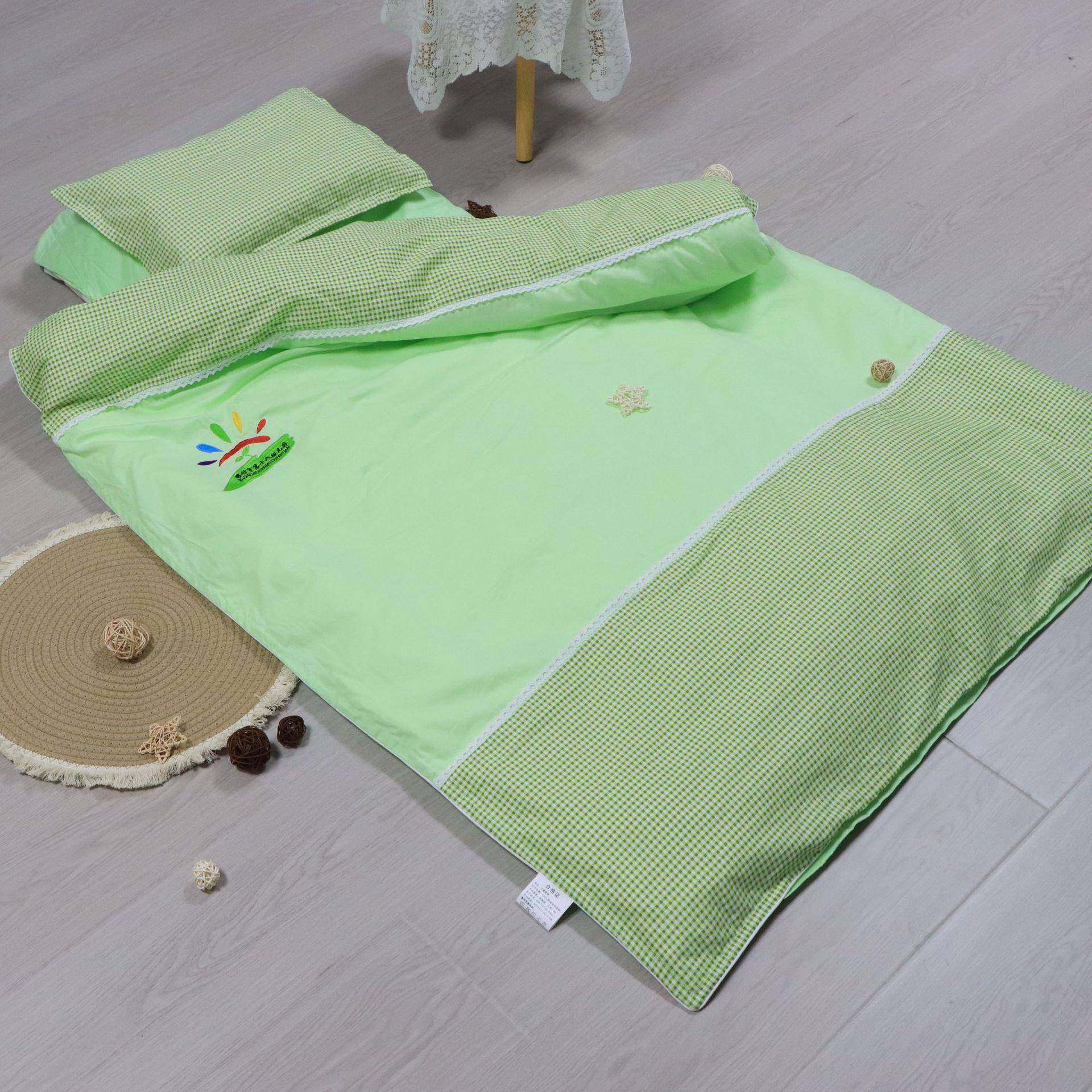 LDX拼接格纹可印LOGO幼儿园被子绣儿童午睡托管被子被三六件套褥