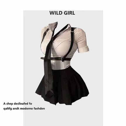 美式jk制服纯欲收腰显瘦短袖衬衫百褶短裙辣妹腰封马甲三件套装女