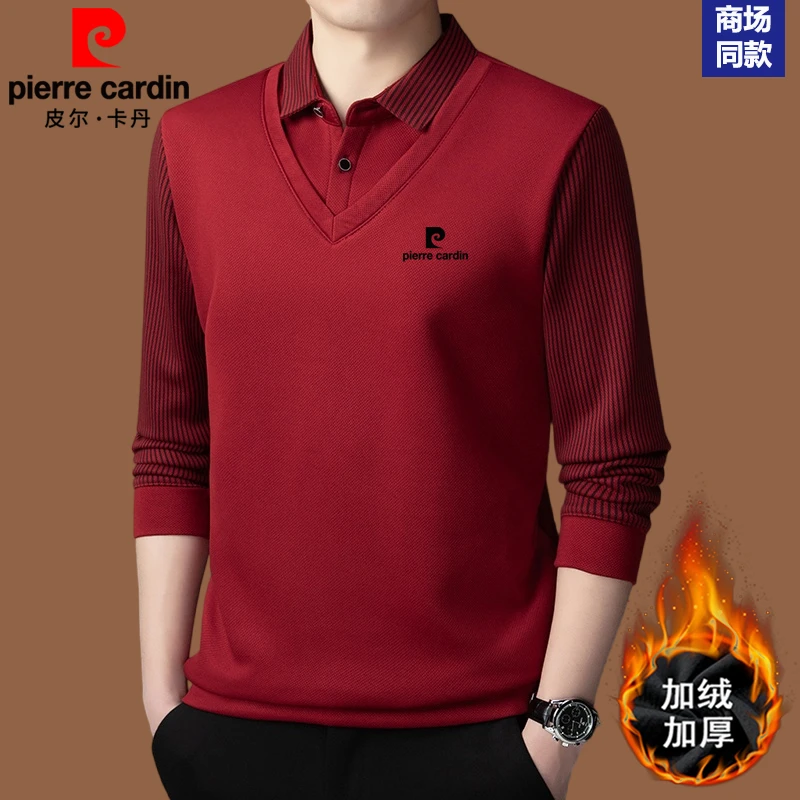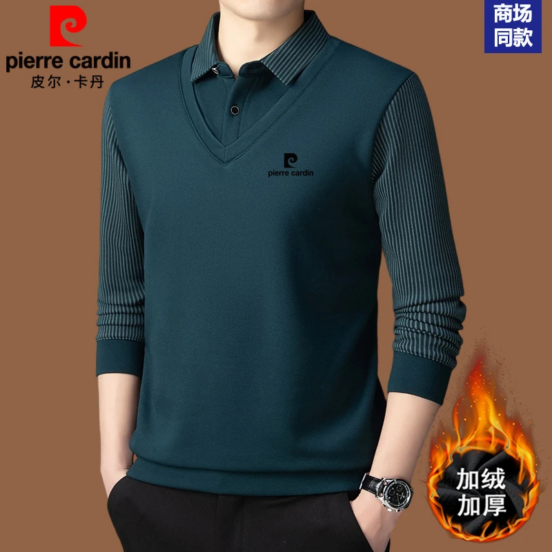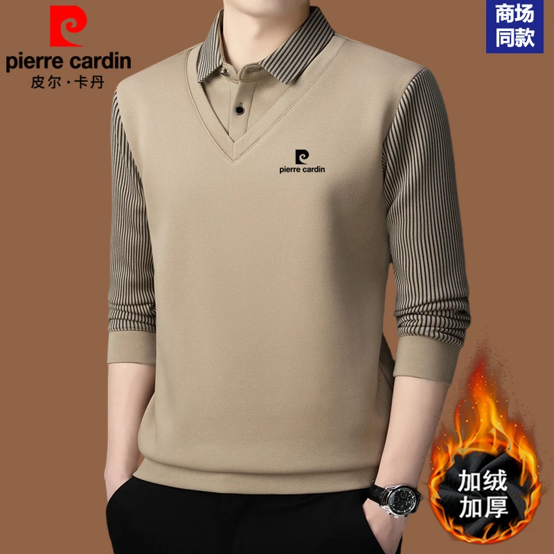 皮尔卡丹羊绒+桑蚕丝假两件POLO衫男士加厚保暖卫衣男长袖打底衫