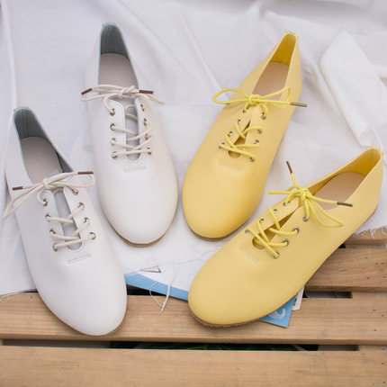 英伦风小皮鞋平底单鞋女圆头复古系带软底软面韩版绑带舒适休闲鞋
