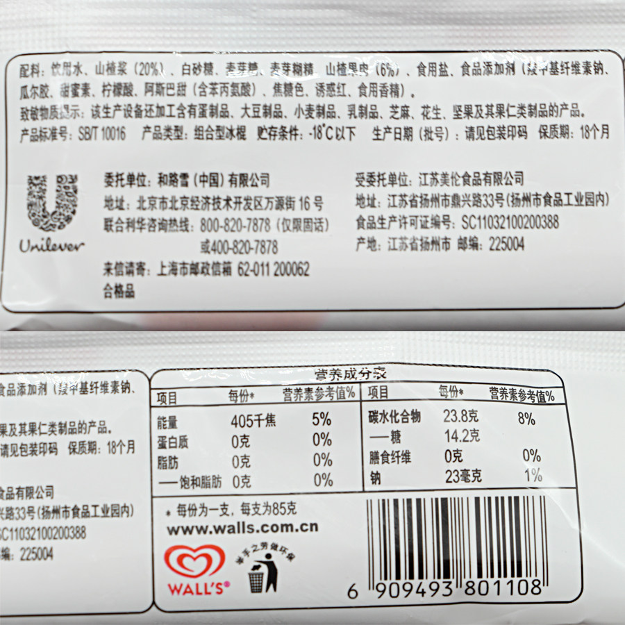 和路雪山楂水果口味冰棍