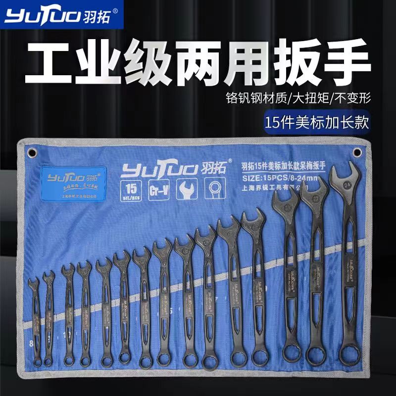羽拓呆梅扳手美式15件呆梅两用扳手套装工业级手动扳手开口梅花