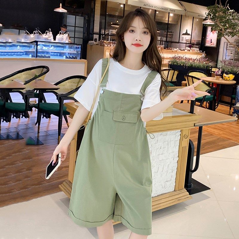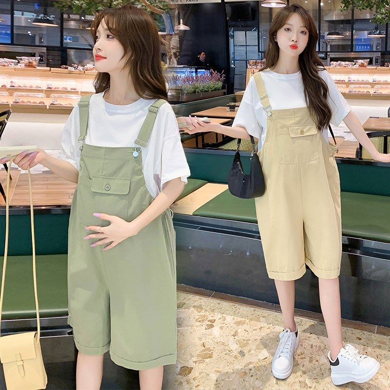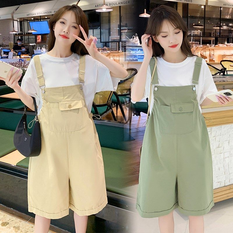 2025新款孕妇背带裤短裤夏季薄款时尚减龄外穿小个子休闲套装女夏