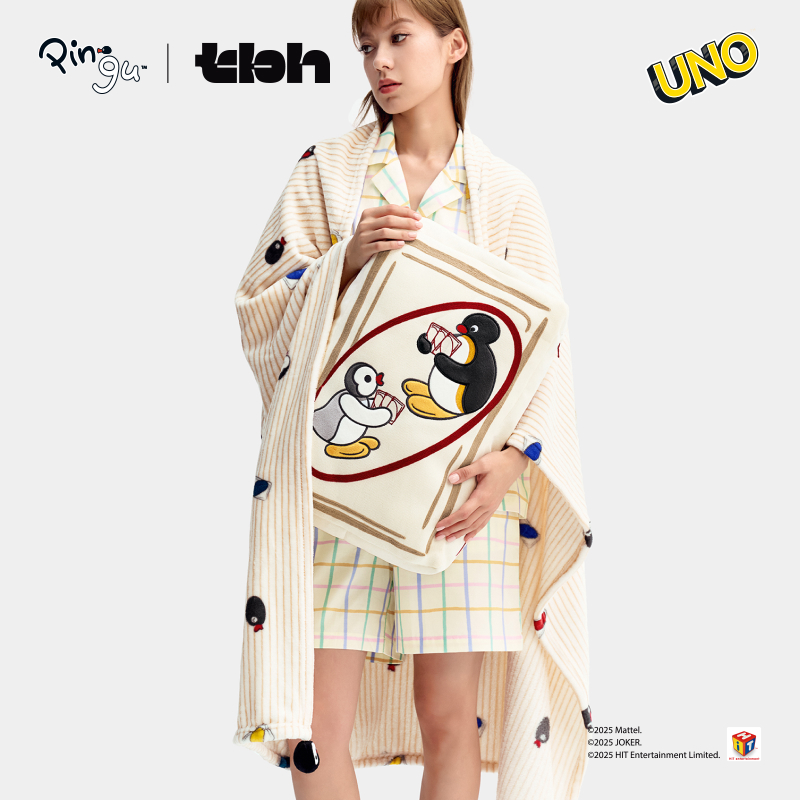 tbh野兽派家居PINGU × UNO系列二合一法兰绒毯抱枕车载靠枕毯