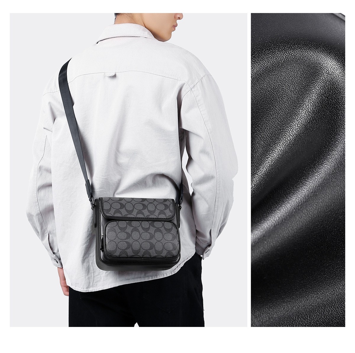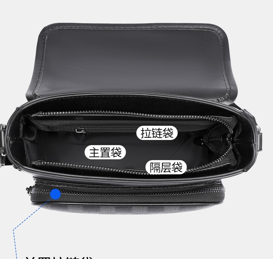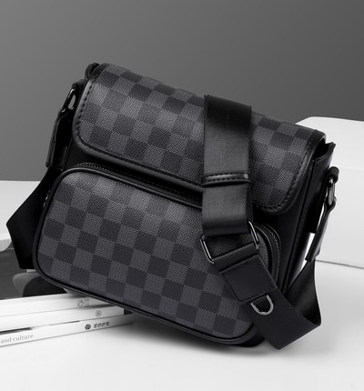 ChuongKaiy男包多隔层单肩斜挎包真皮小方包高级感小号格纹邮差包