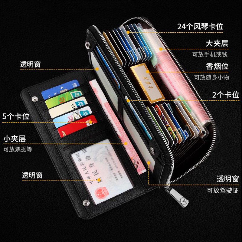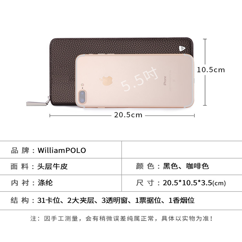 Williampolo钱包长多卡位大容量真皮男士卡包装烟手机多功能手包