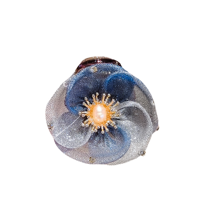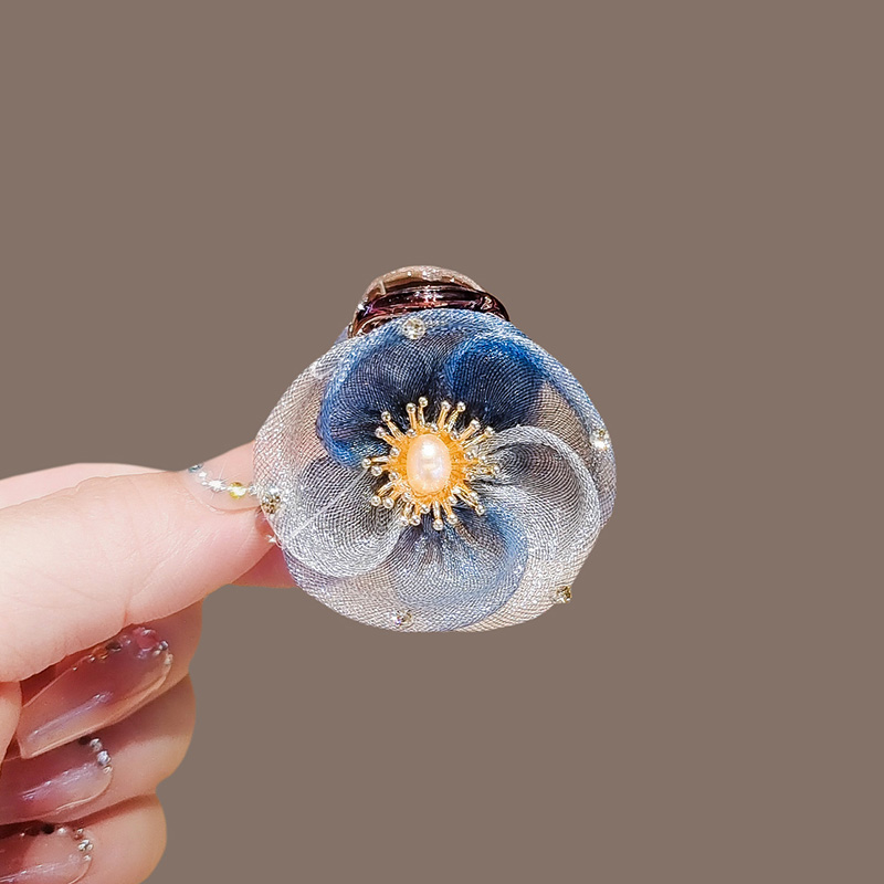 迷雾蓝渐变花朵小抓夹女2024年新款唯美山茶花顶夹后脑勺发卡头饰