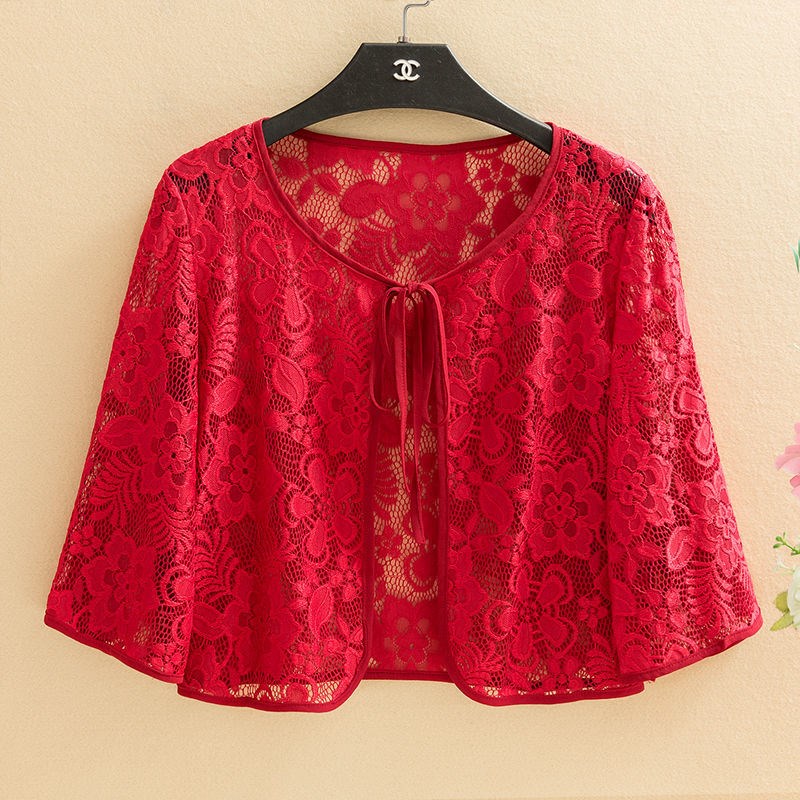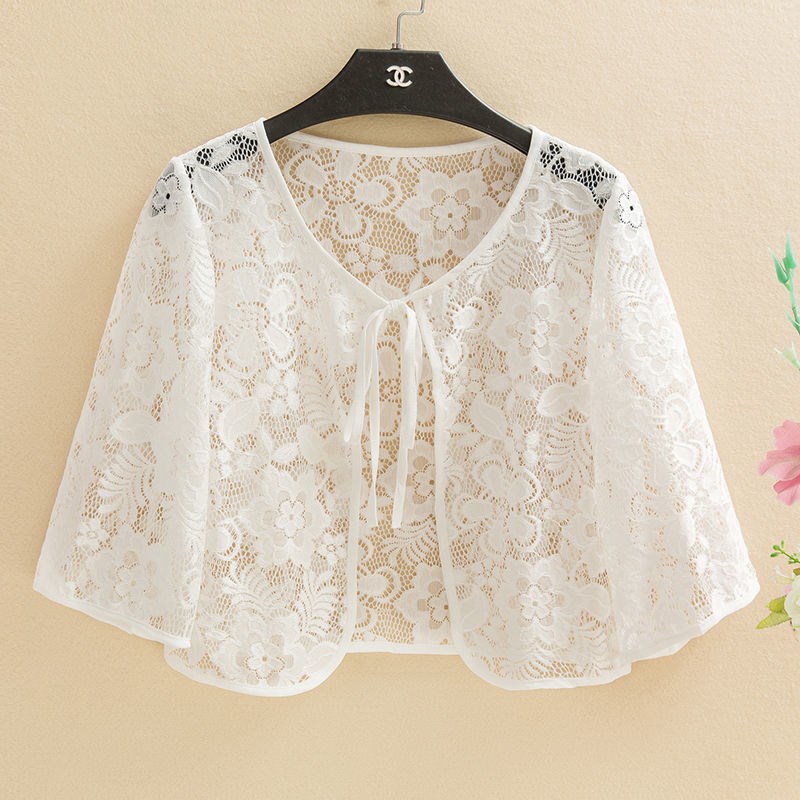 夏季新款女短款薄外套蕾丝开衫外搭系带披肩上衣防晒小外套空调衣