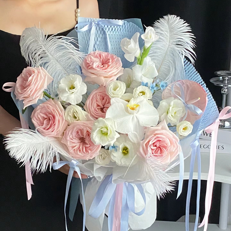 少女芭蕾风花束包装纸鲜花花束包花纸石纹纸手撕东巴纸花店材料