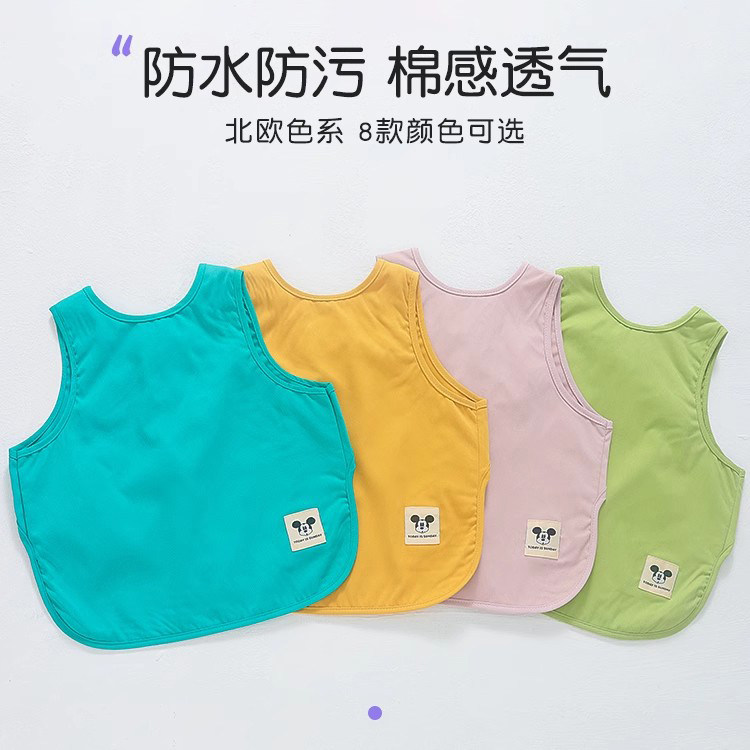 宝宝防水无袖围兜儿童反穿衣幼儿园吃饭罩衣婴儿防脏夏季画画围裙