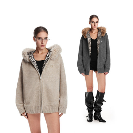 FDR 慵懒高级感针织衫2025秋冬可外穿厚开衫男豹纹毛领毛衣外套女