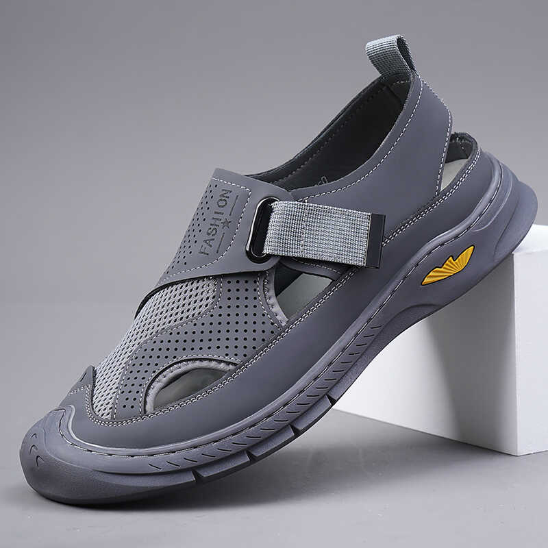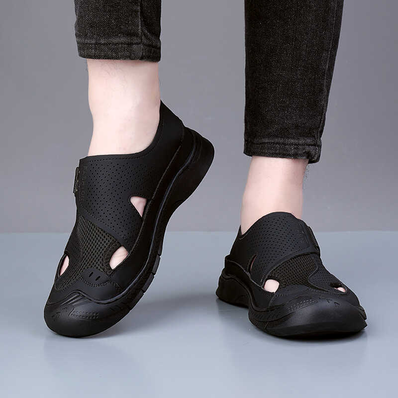 正品折扣包头凉鞋男夏季新款镂空透气洞洞鞋软底休闲时尚开车男鞋