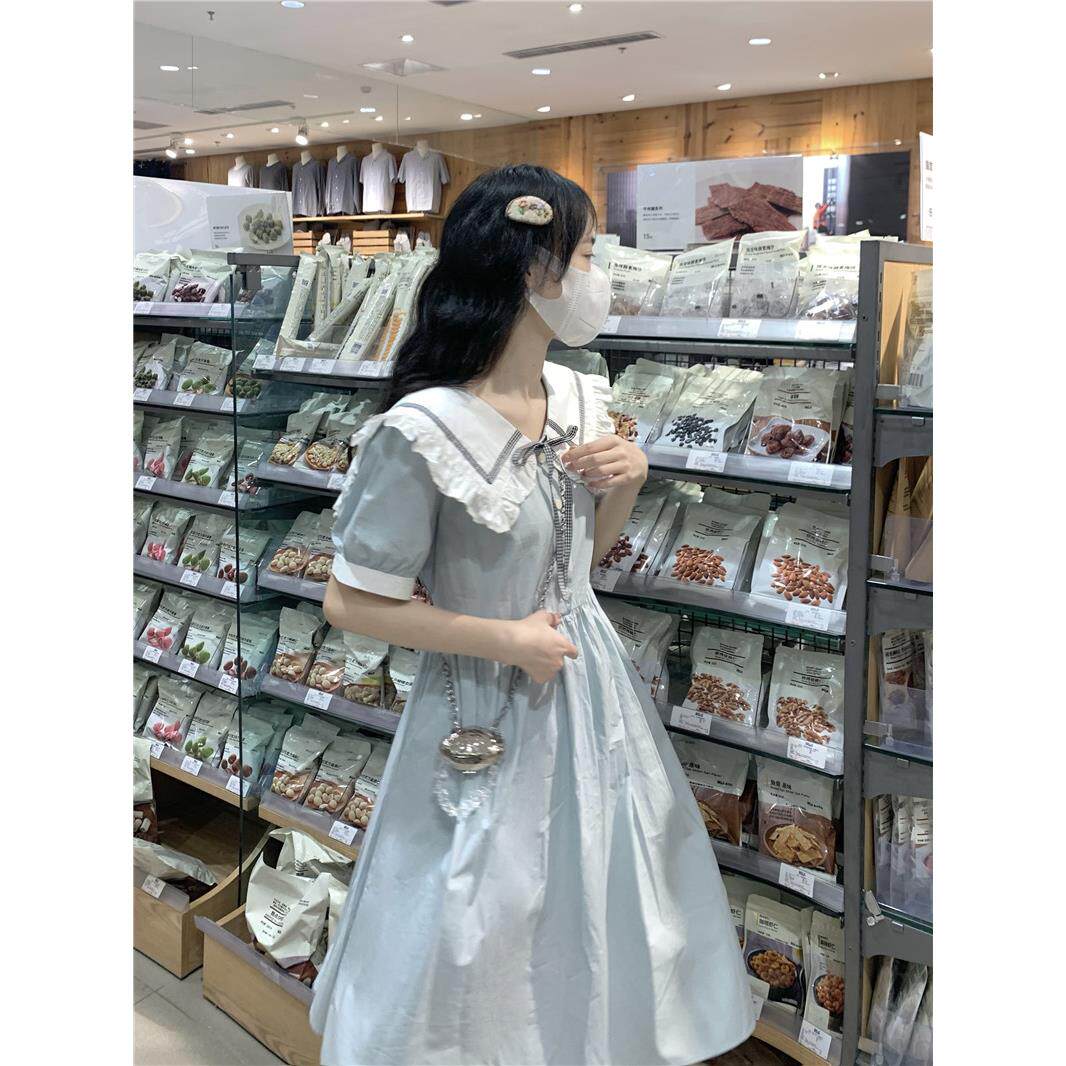 少女大童娃娃领连衣裙2025夏装新款初高中生学院风韩版宽松中长裙