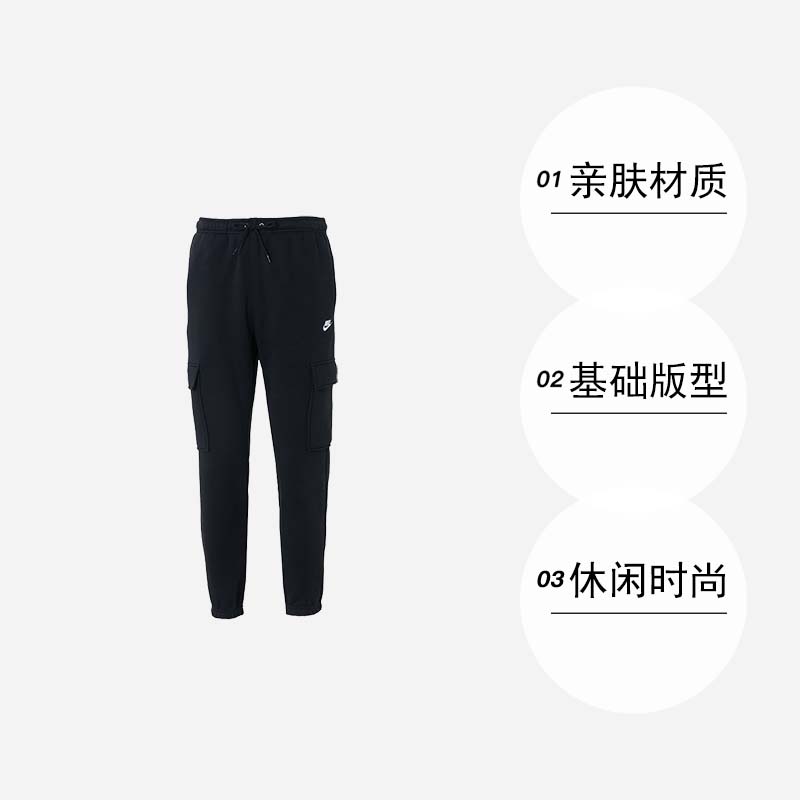 【自营】耐克束脚裤男秋冬多口袋加绒保暖工装裤百搭休闲束脚长裤