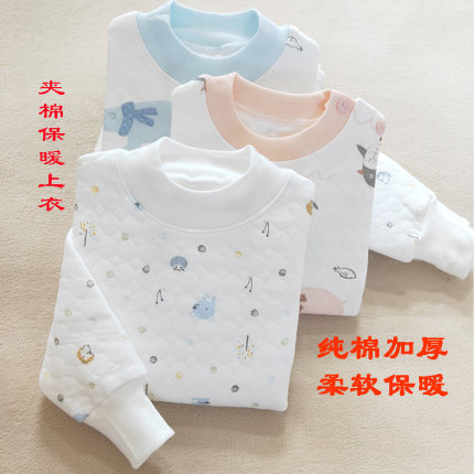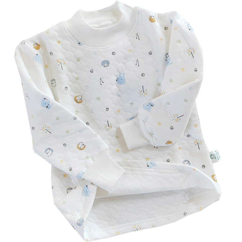 小青龙男女童宝宝纯棉加厚秋衣单件上衣三层夹棉儿童保暖内衣秋冬