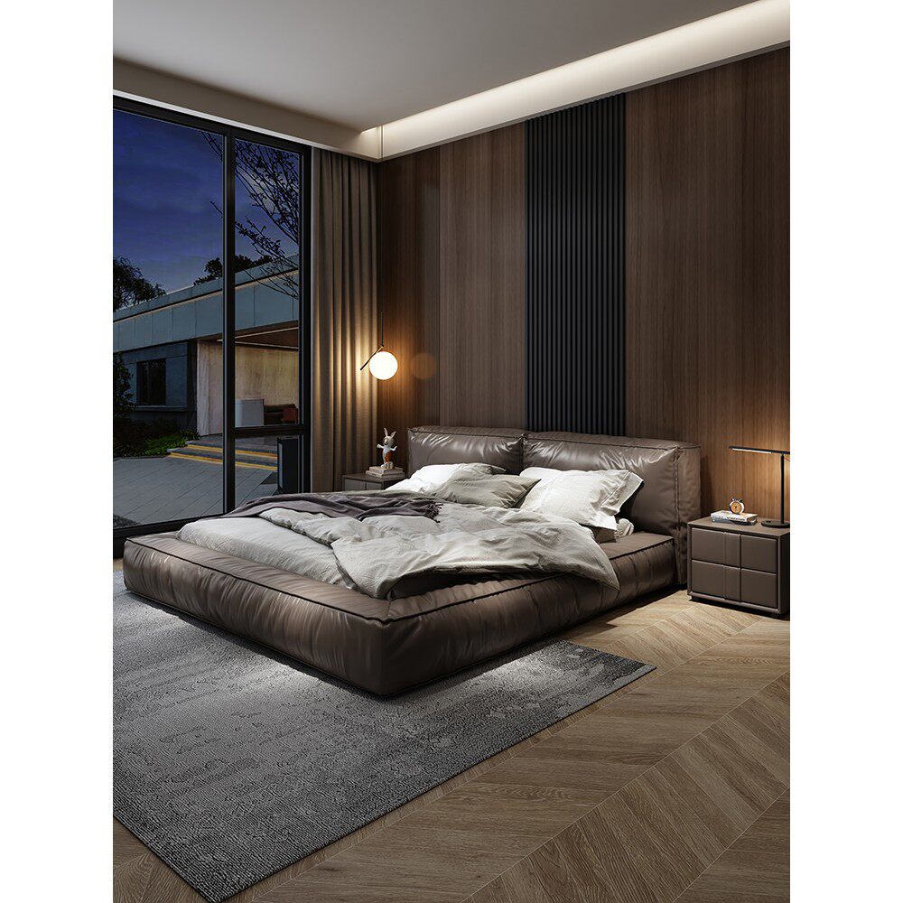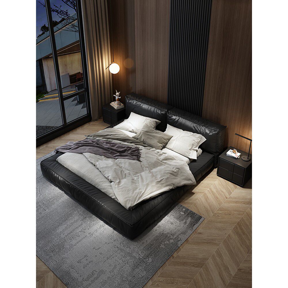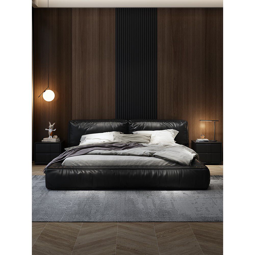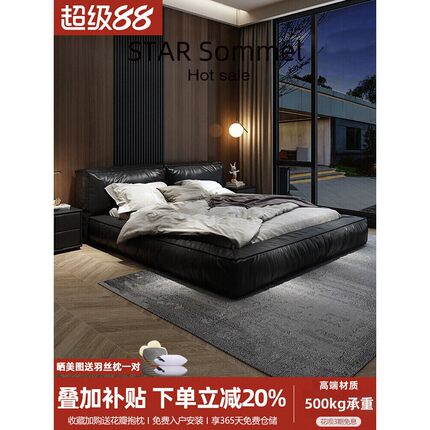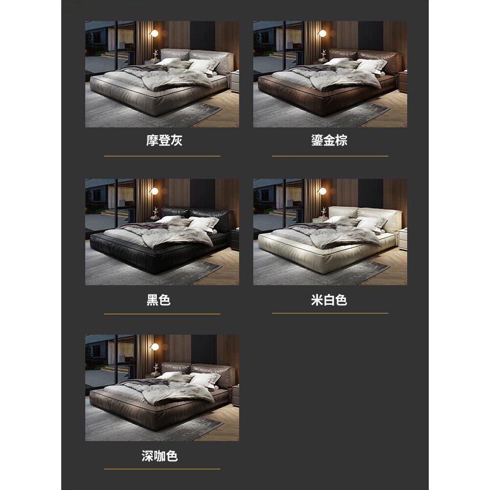 金可儿意式轻奢真皮床现代简约双人婚床1.8米网红床极简主卧大气