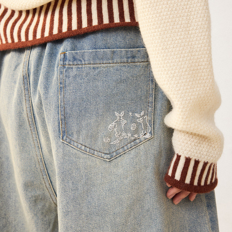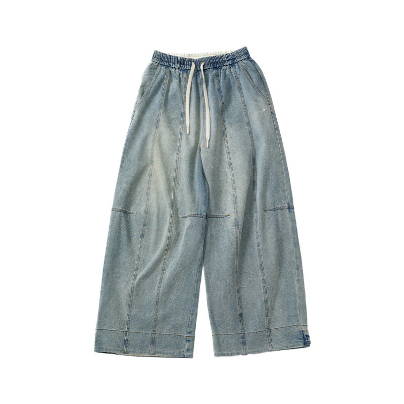 阔腿牛仔裤女复古做旧洗水