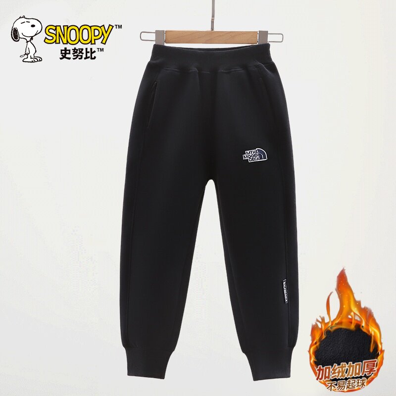 史努比男女童加绒秋冬装运动裤子