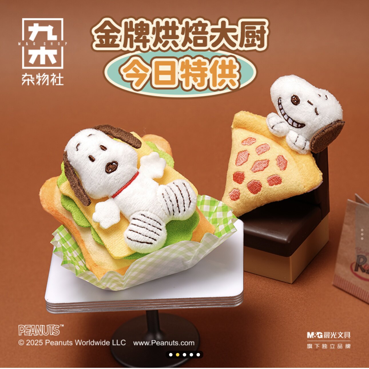 现货九木杂物社史努比PEANUTS烘焙屋系列毛绒冰箱贴惊喜盒生日礼