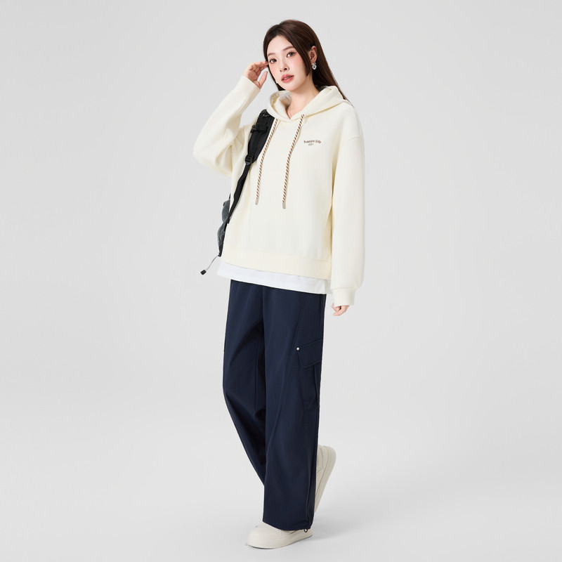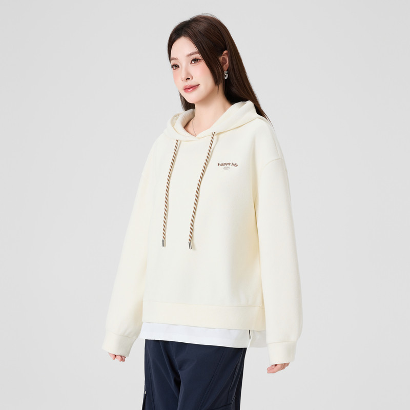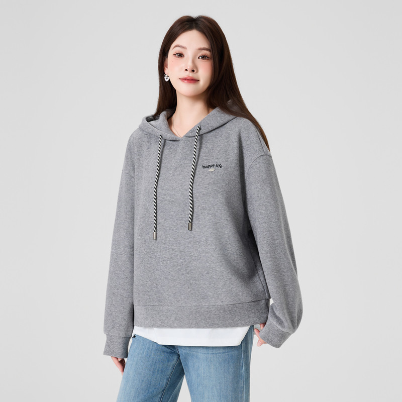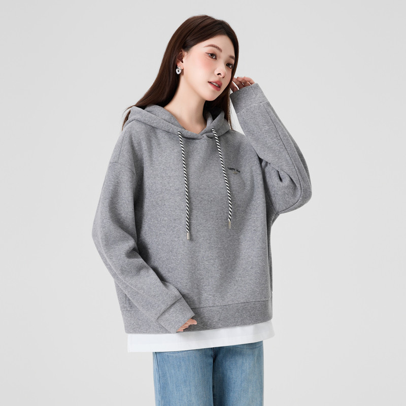 快鱼2025冬季新假两件连帽磨毛卫衣外套女加厚韩版简约慵懒风上衣