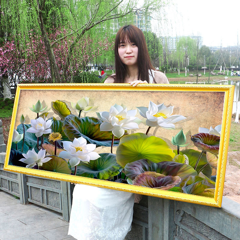 荷花2025新款5D水晶钻石画满钻点钻贴钻粘钻十字绣客厅砖石秀莲花