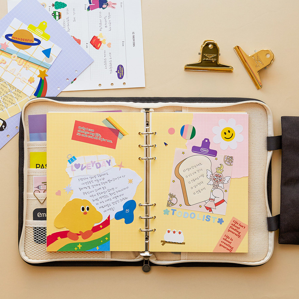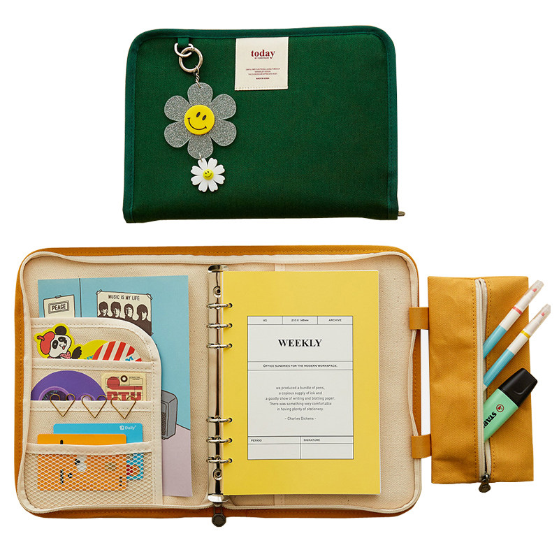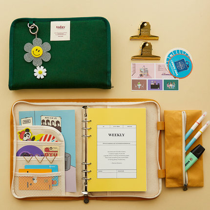 韩国funnymade复古防水帆布A5封套活页夹6孔学生手账外壳记事本