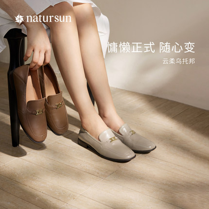 natursun复古羊皮百搭乐福鞋女夏季英伦平底通勤舒适一脚蹬豆豆鞋