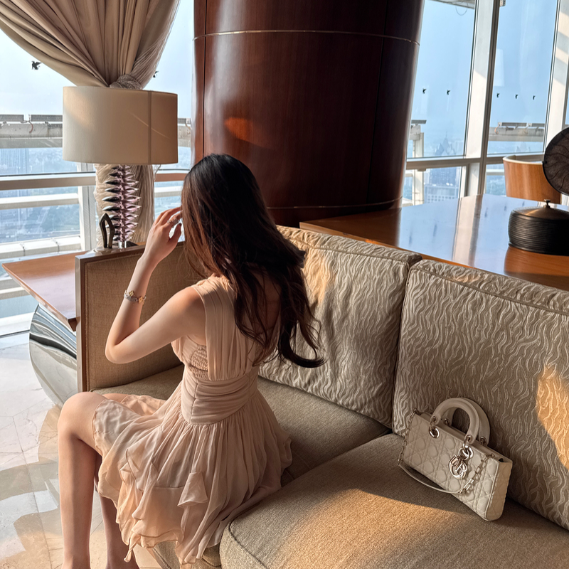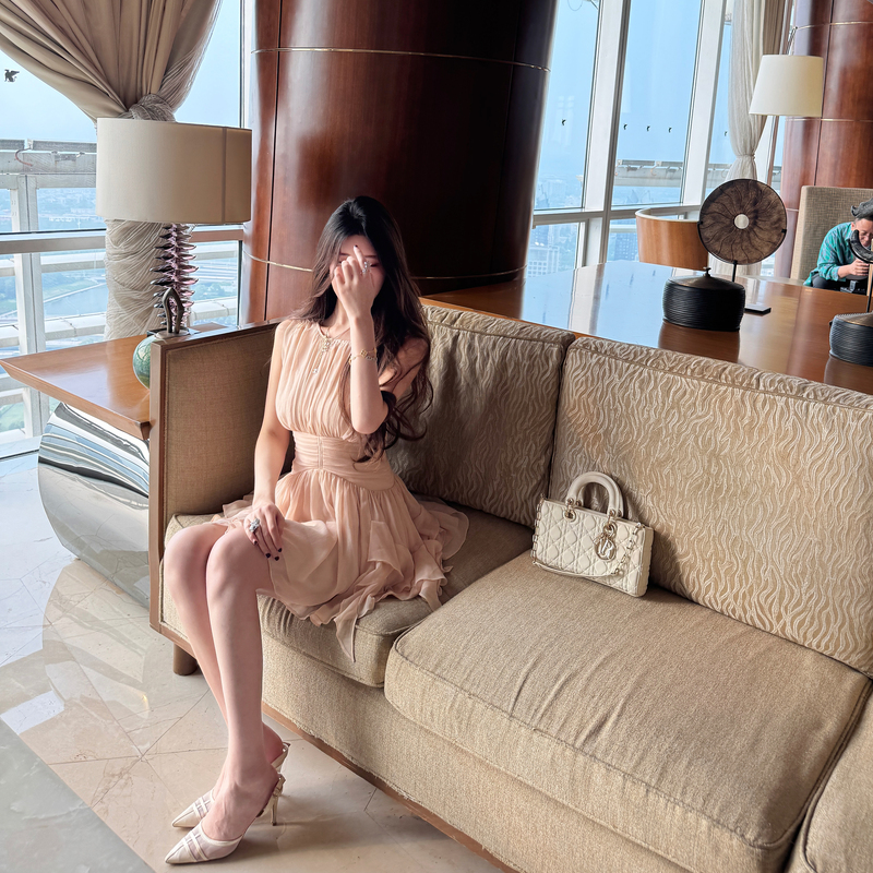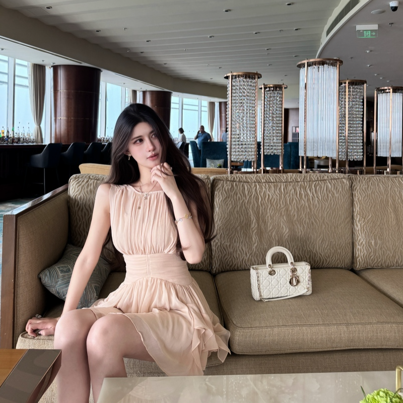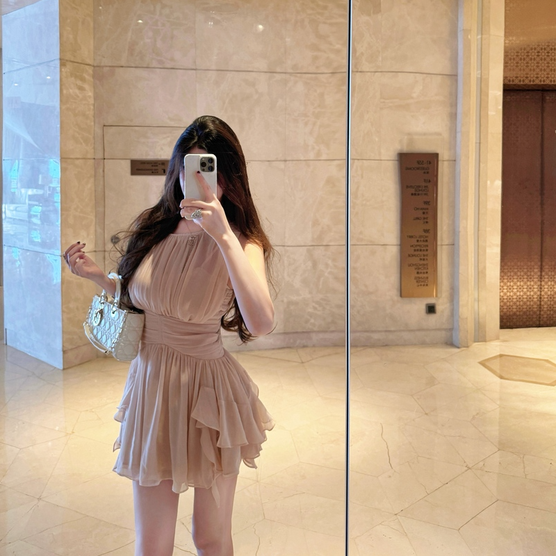 M900粉色连衣裙2025新款裙子女夏季小个子海边度假收腰性感高级感