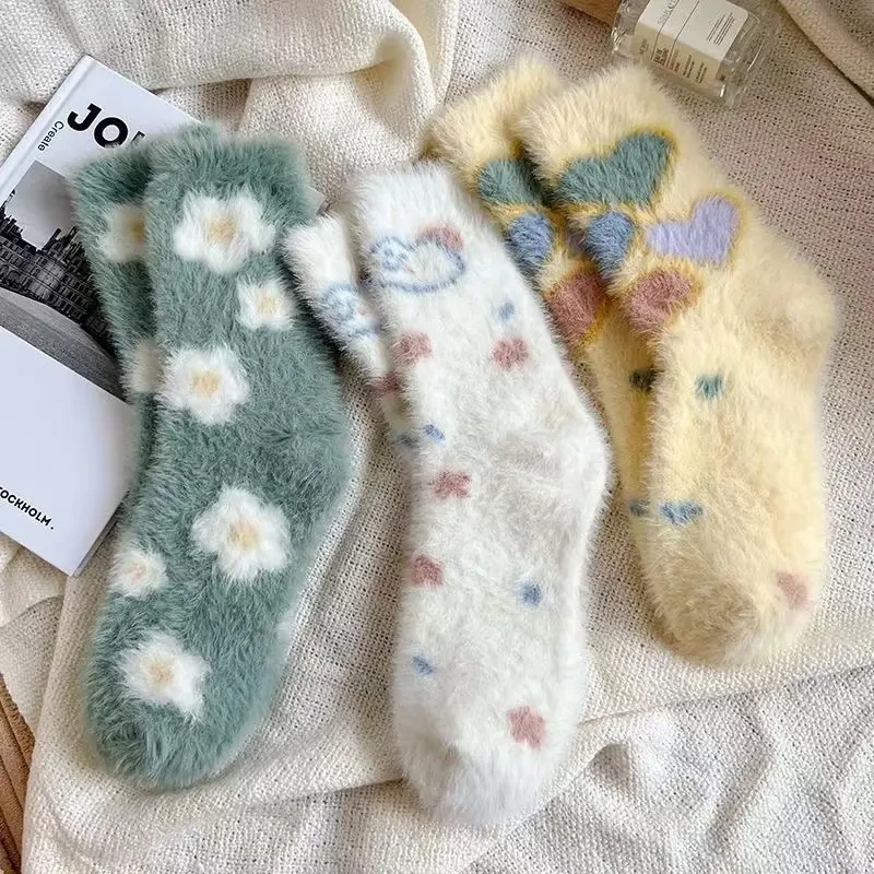 秋季新款毛绒绒百搭儿童袜子卡通蝴蝶白云毛绒保暖软呼呼暖脚袜S