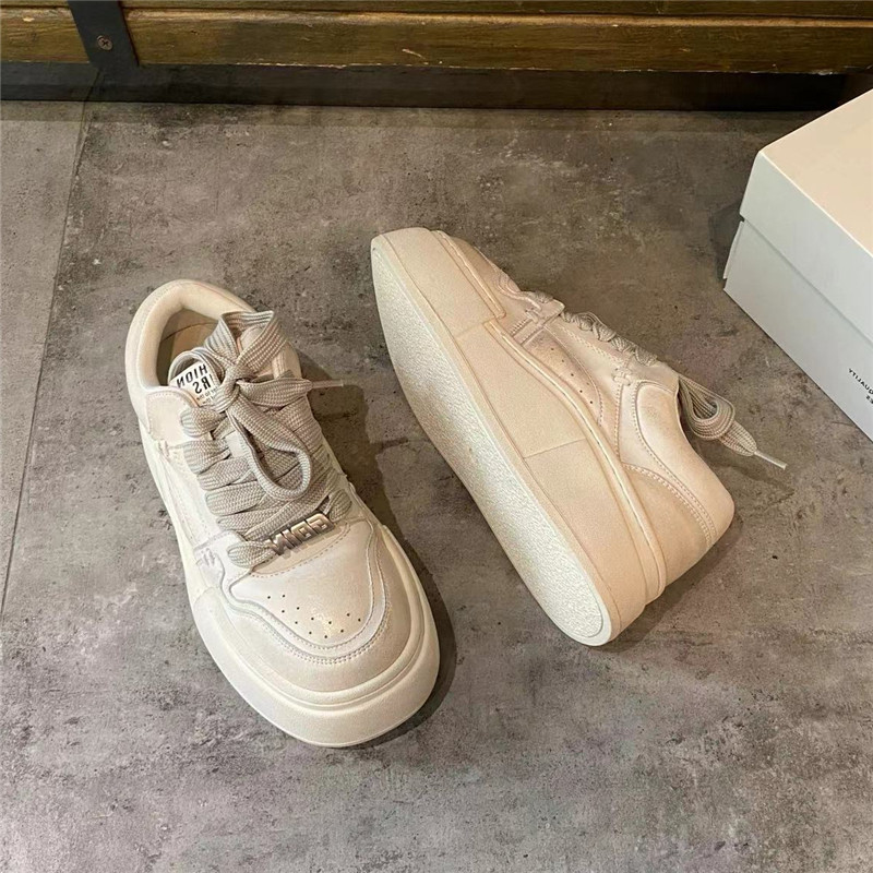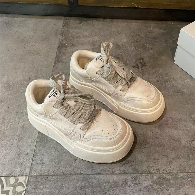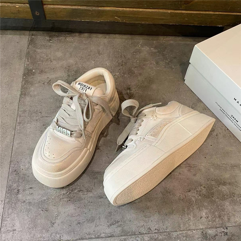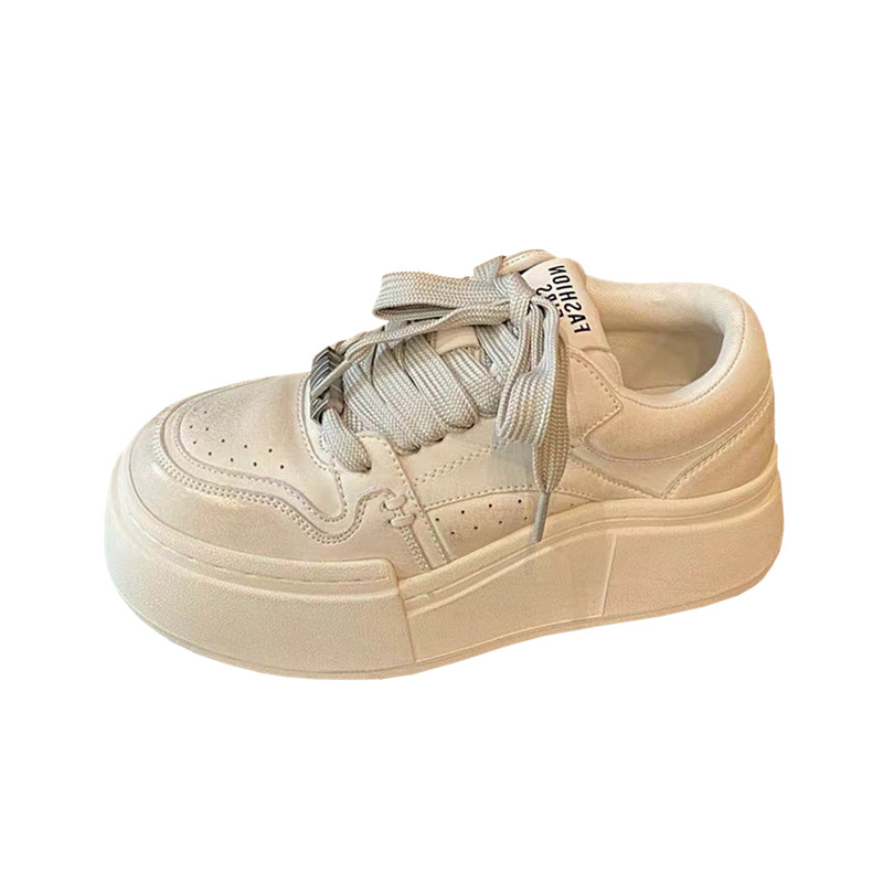 2024秋季新款韩版系带圆头厚底休闲鞋深口低帮女鞋子时尚百搭板鞋