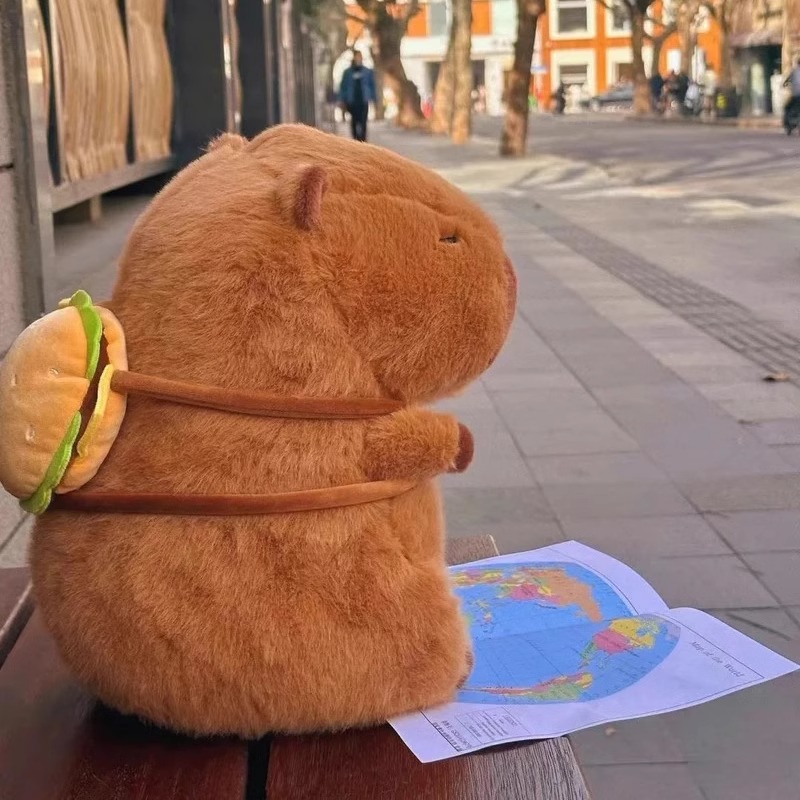 汉堡包背包卡皮巴拉公仔水豚鼠玩偶土拨鼠情人节生日礼物儿童玩具