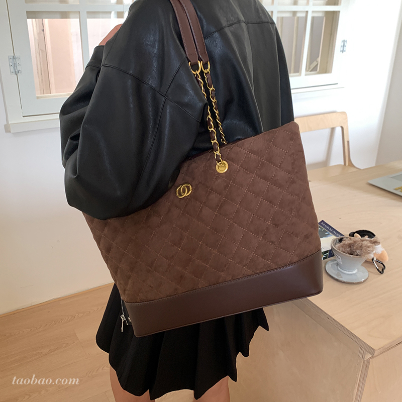 通勤复古麂皮绒包包2025新款休闲大容量单肩包外出上班手提托特包