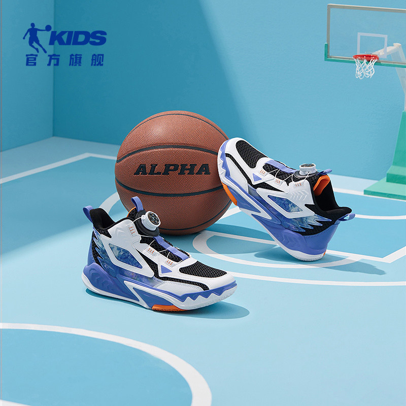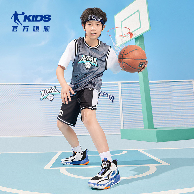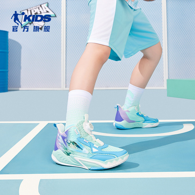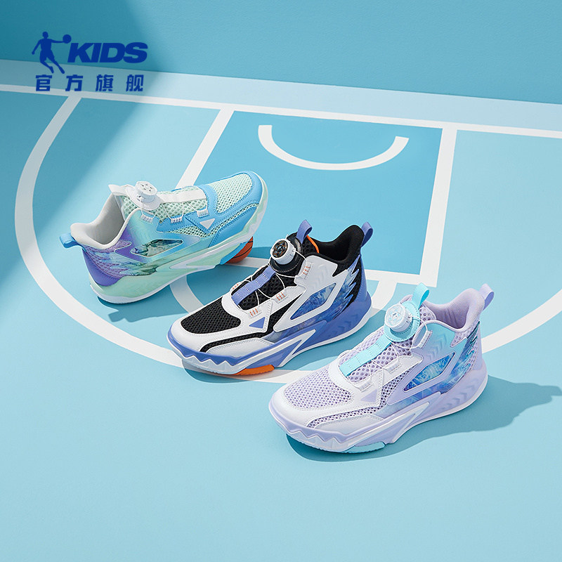 乔丹童鞋女大童篮球鞋旋钮扣2025夏季新款男童减震球鞋儿童运动鞋