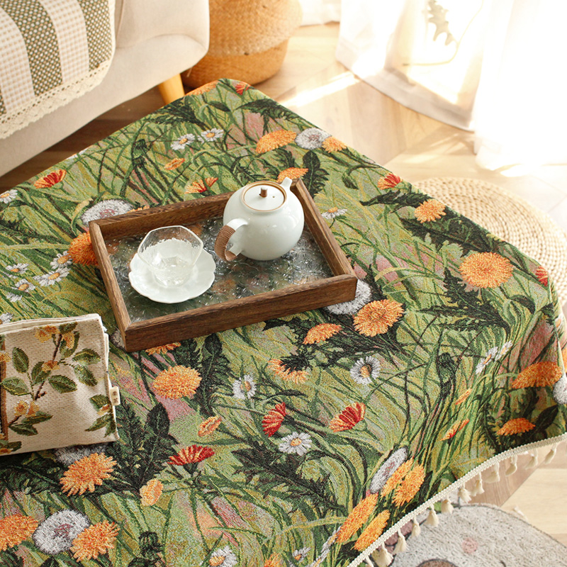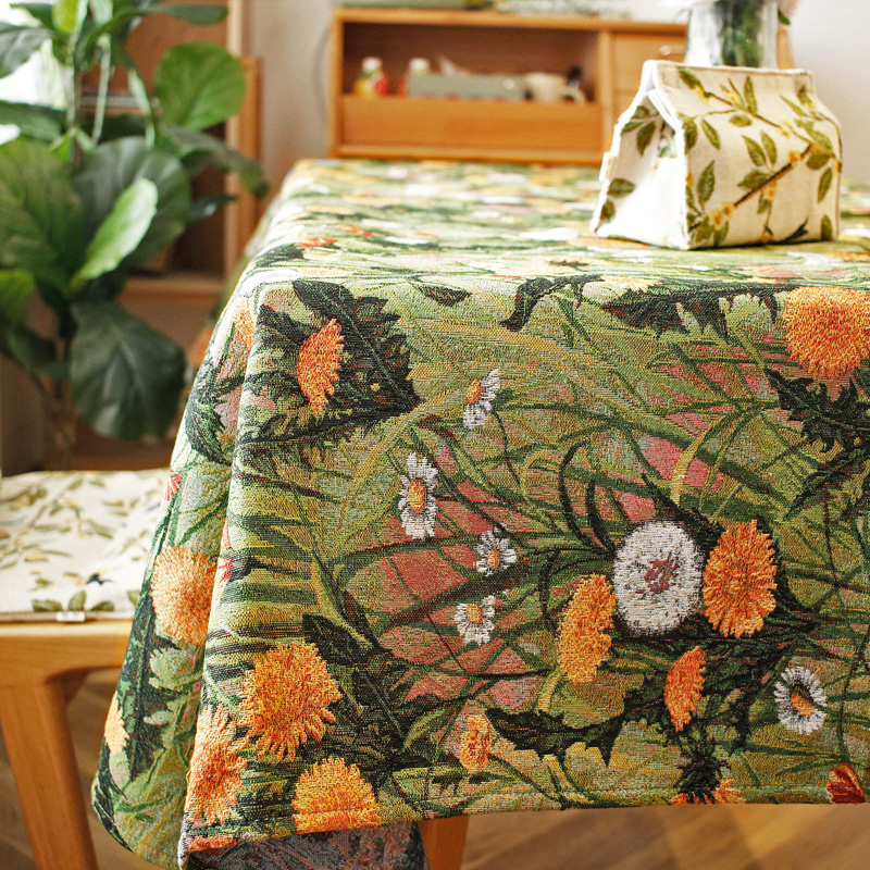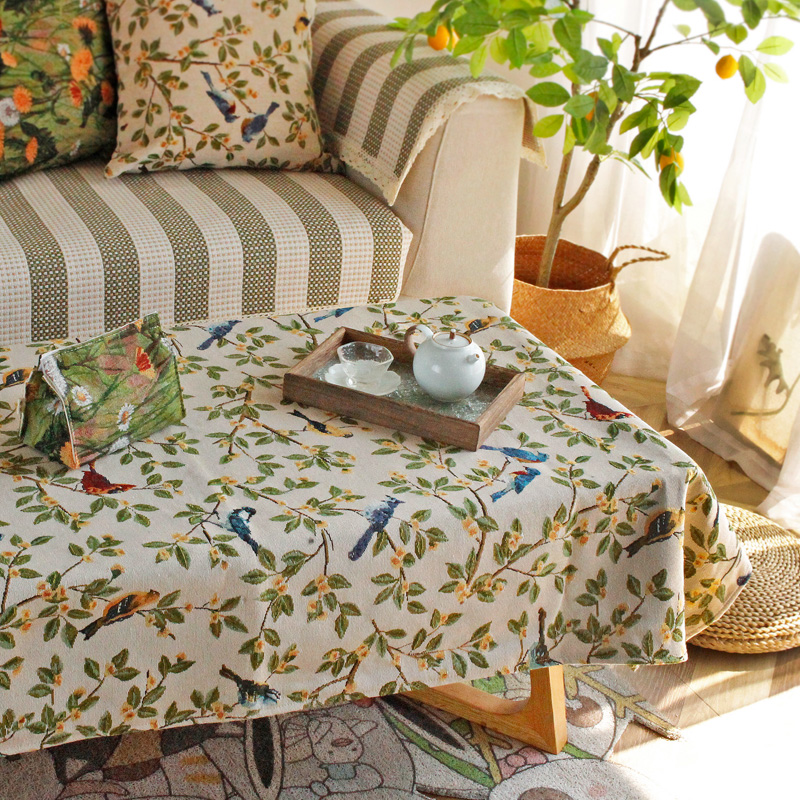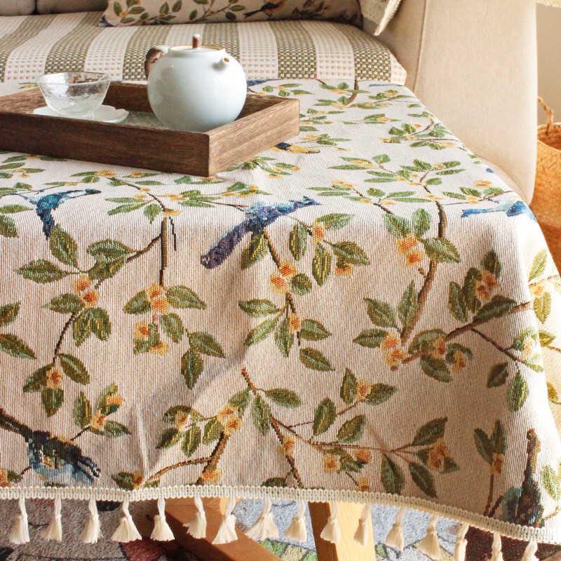 田园餐桌布艺复古提花长方形茶几布小鸟绿色书桌圆桌台布美式盖布