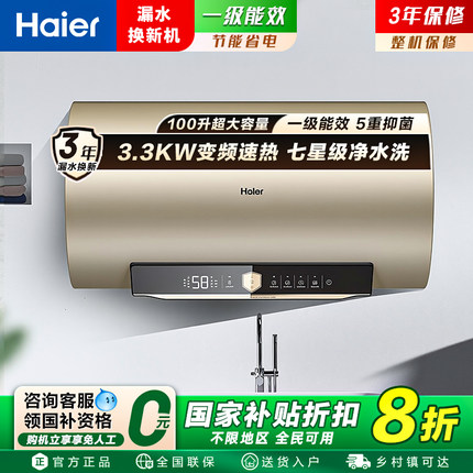 【政府补贴】海尔电热水器60L/80/100升一级能效省电变频家用洗澡