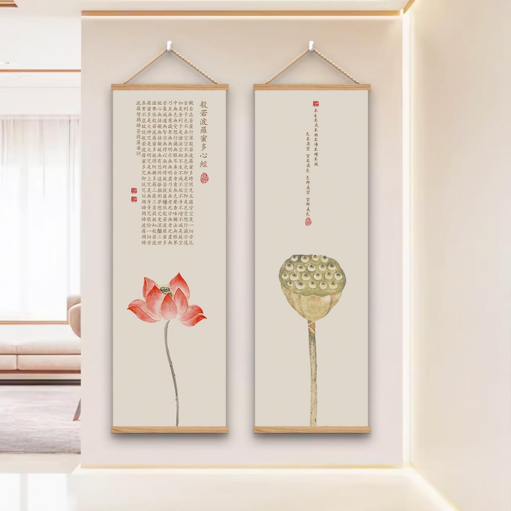 心经挂画般若菠萝蜜多荷花挂画装饰新中式客厅玄关佛堂禅意挂字画
