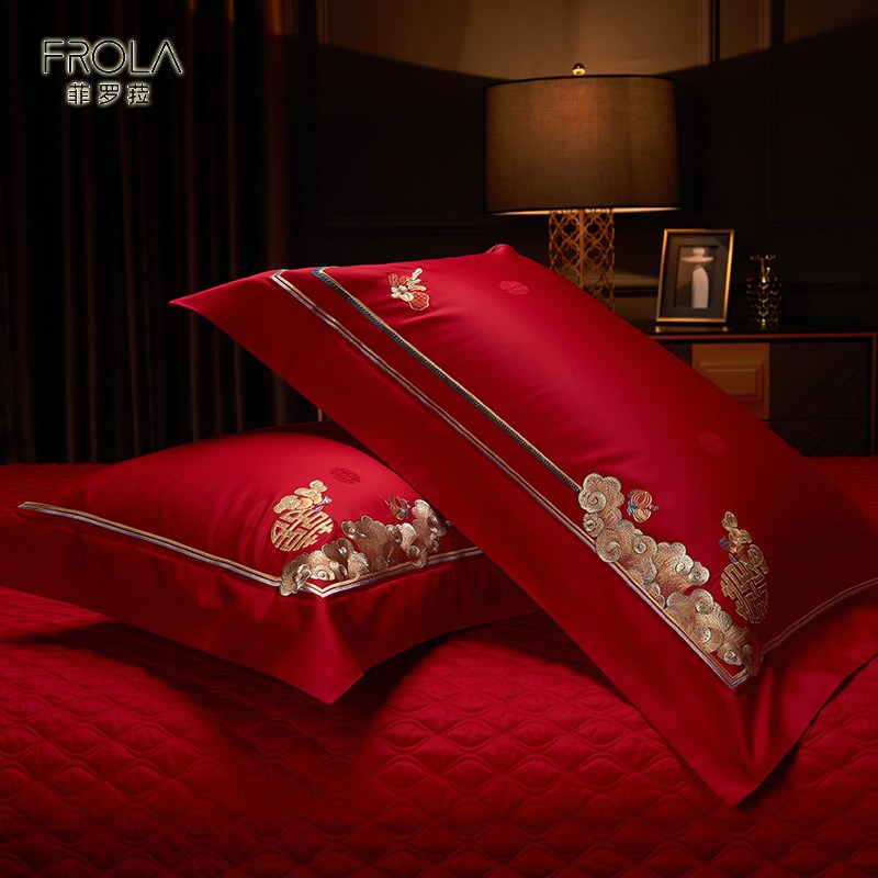 Frola/菲罗菈结婚四件套六件套婚庆喜被刺绣婚礼大红色床上用品