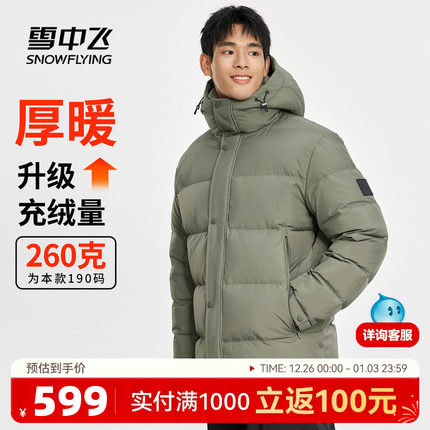 雪中飞2025冬新款男士短款连帽羽绒服高充绒休闲时尚加厚百搭户外