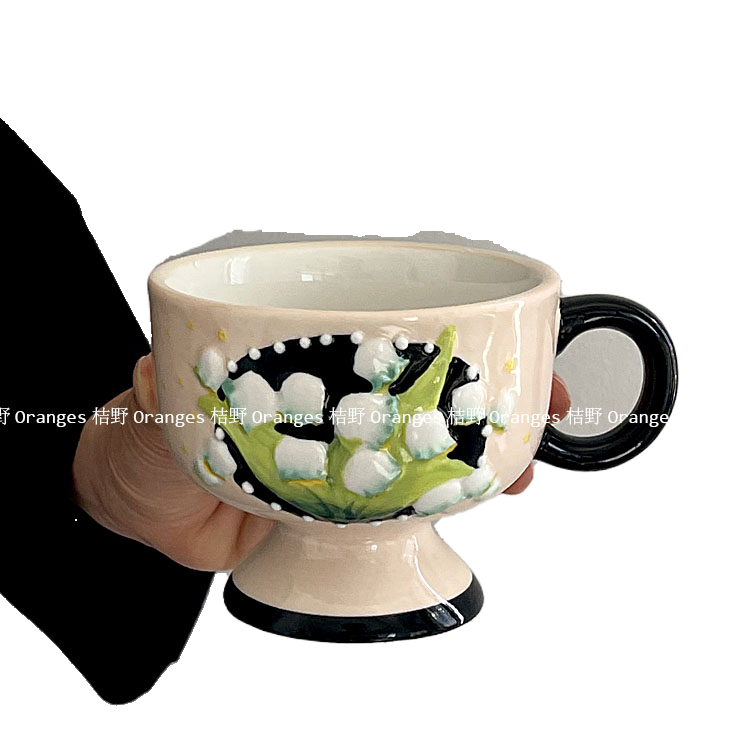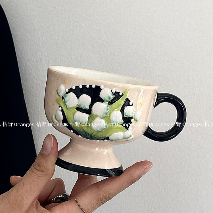 Oranges 复古手作陶瓷杯vintag中古铃兰花手绘马克杯咖啡杯子礼物